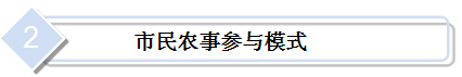▲可由農(nóng)民提供土地,讓市民參與耕作的園地。一般是將位于近郊的農(nóng)地集中規(guī)劃為若干小區(qū),分別出租給城市居民,用以種植花草、蔬菜、果樹或經(jīng)營家庭農(nóng)藝,其主要目的是讓市民體驗農(nóng)業(yè)生產(chǎn)過程,享受耕作樂趣。市民農(nóng)園以休閑體驗為主,多數(shù)租用者只利用節(jié)假日到農(nóng)園作業(yè),平時交由農(nóng)地提供者代管。根據(jù)使用對象的不同,該模式分為家庭農(nóng)園、兒童農(nóng)園、銀發(fā)農(nóng)園3種類型。